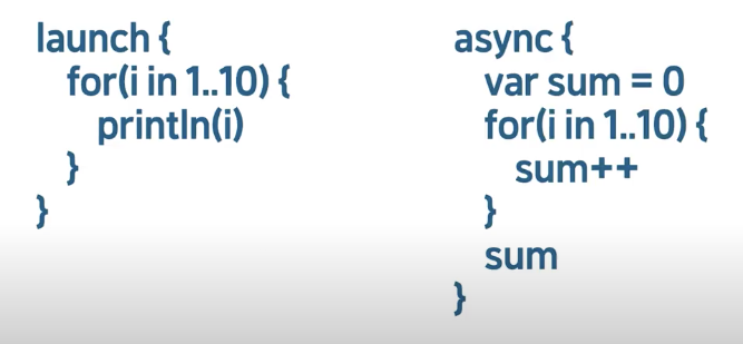 import kotlinx.coroutines.*import 필수- 코르틴은 제어범위 및 실행범위를 지정할 수 있다 -> 코루틴의 Scope