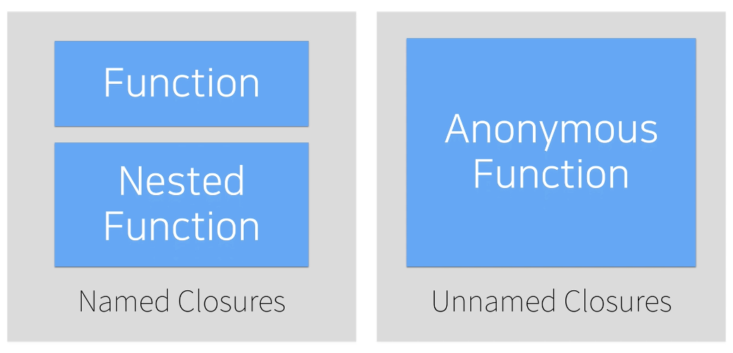 let result = c2("Closure") //Closure에서는 Argument label 사용 하지 않는다