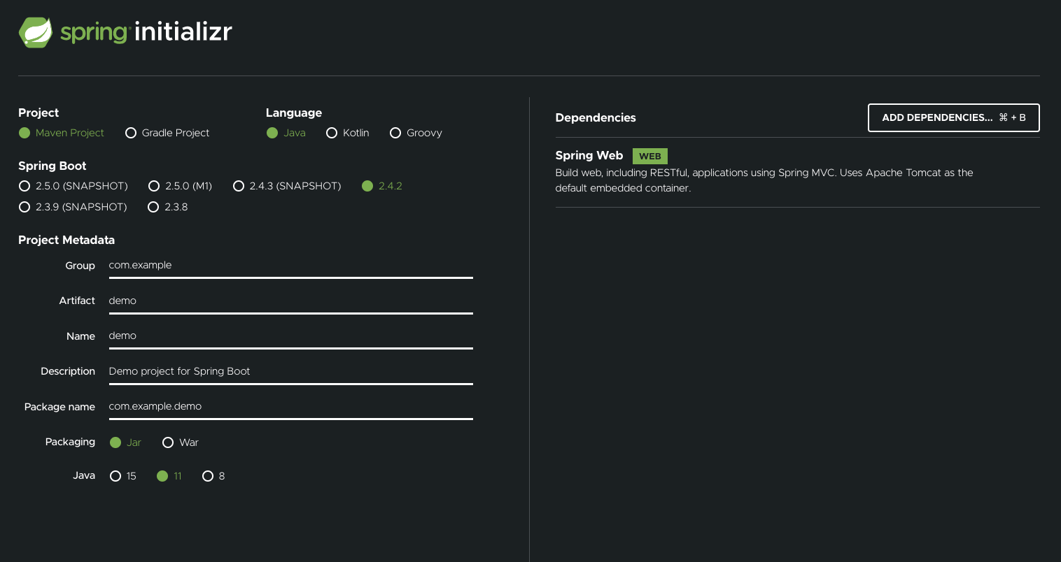 1. Spring Initializer 로 프로젝트 생성